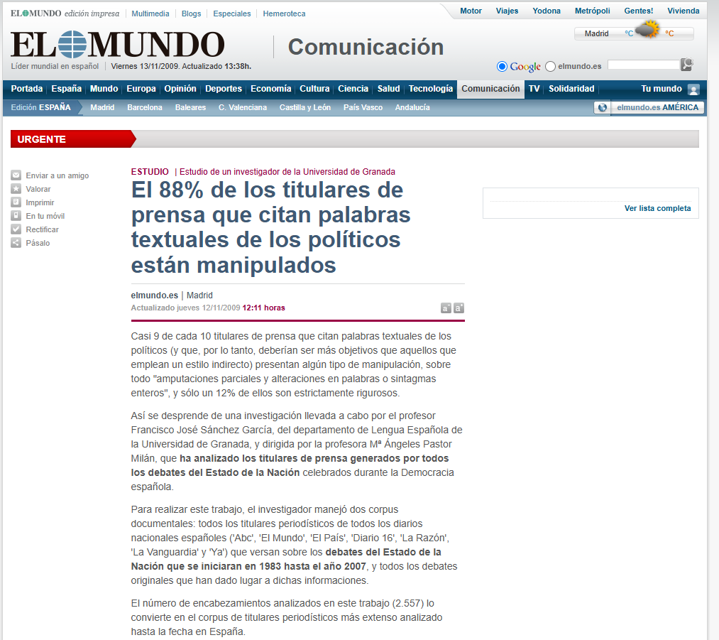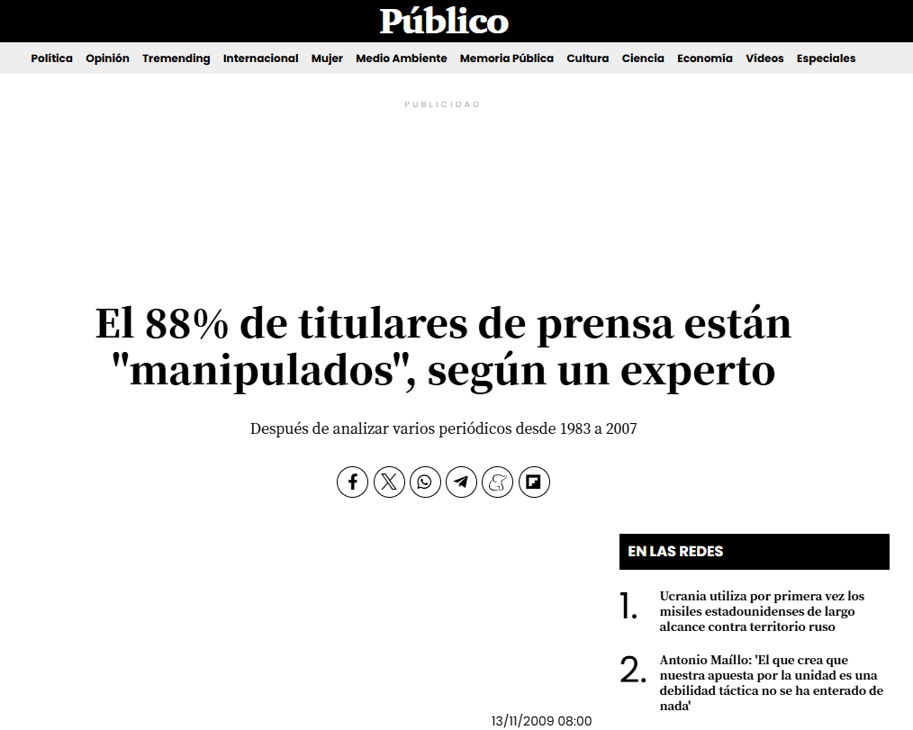 Como investigador, he analizado titulares de prensa de los principales medios españoles desde 1983 hasta 2007. Los resultados son